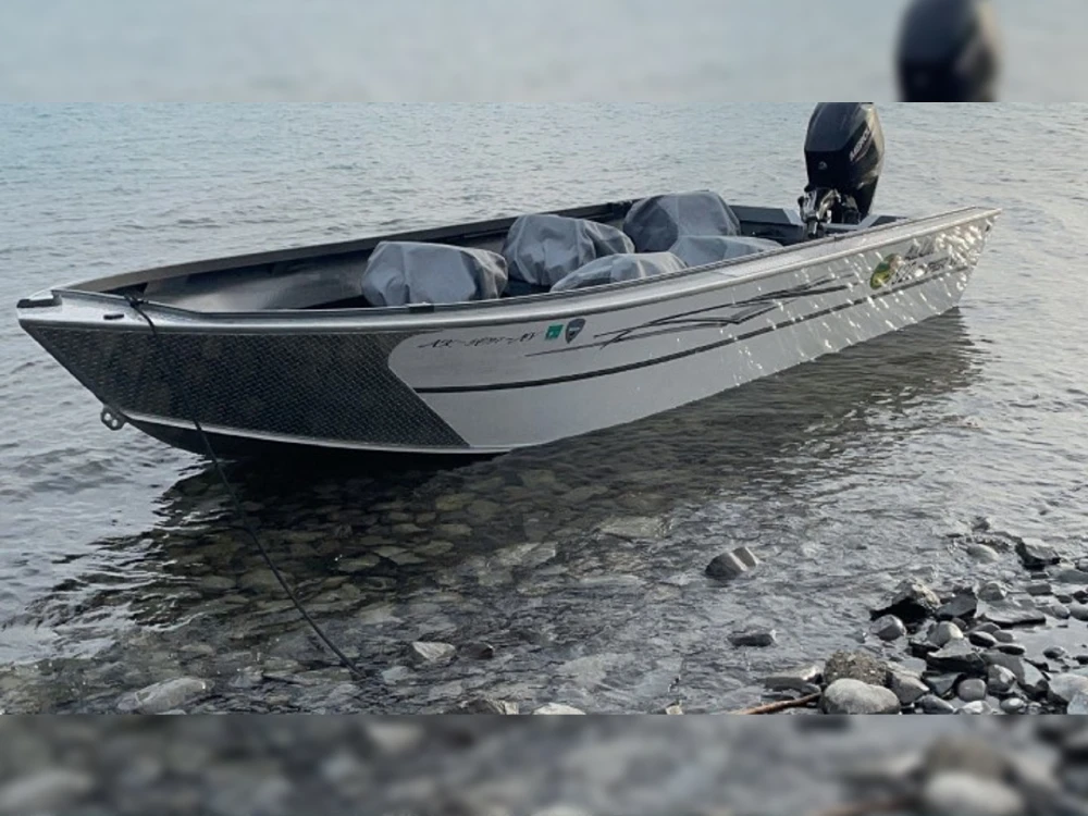 Powered by a 50 hp Mercury outboard. This boat is perfect for navigating the shallow, soft waters of the Kenai. It is of premium quality, comfortable, very stable & safe to fish from.